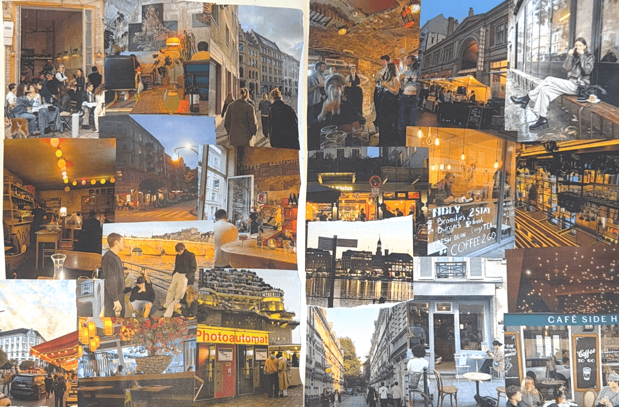 Ik heb beeldonderzoek gedaan naar verschillende concepten, zoals Architectuur en kunst, Natuur en the warmth of hamburg. Vervolgens heb ik twee concepten gekozen en moodboard voor gemaakt.